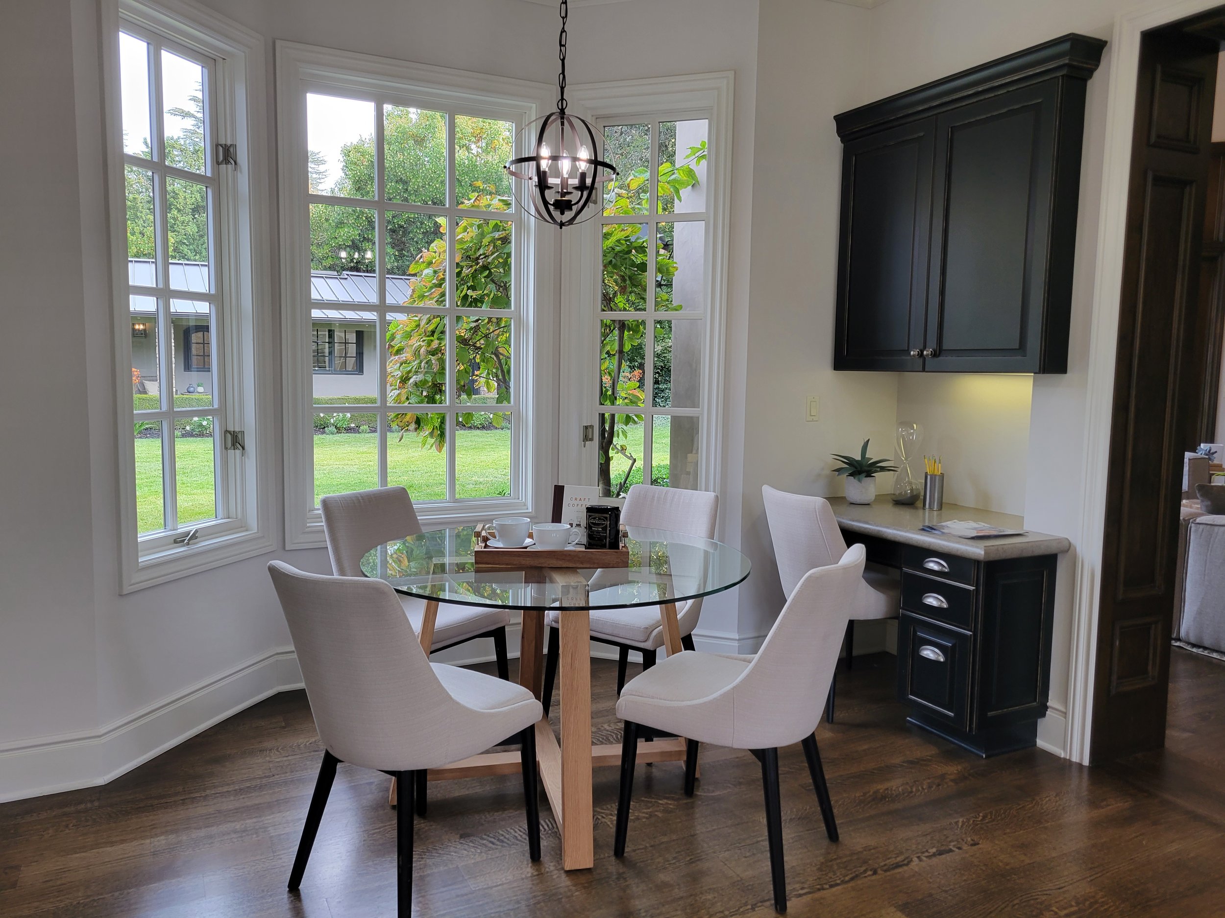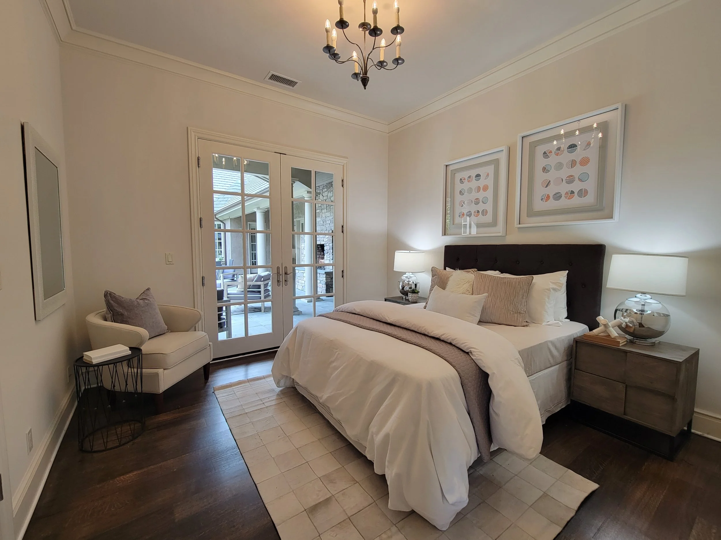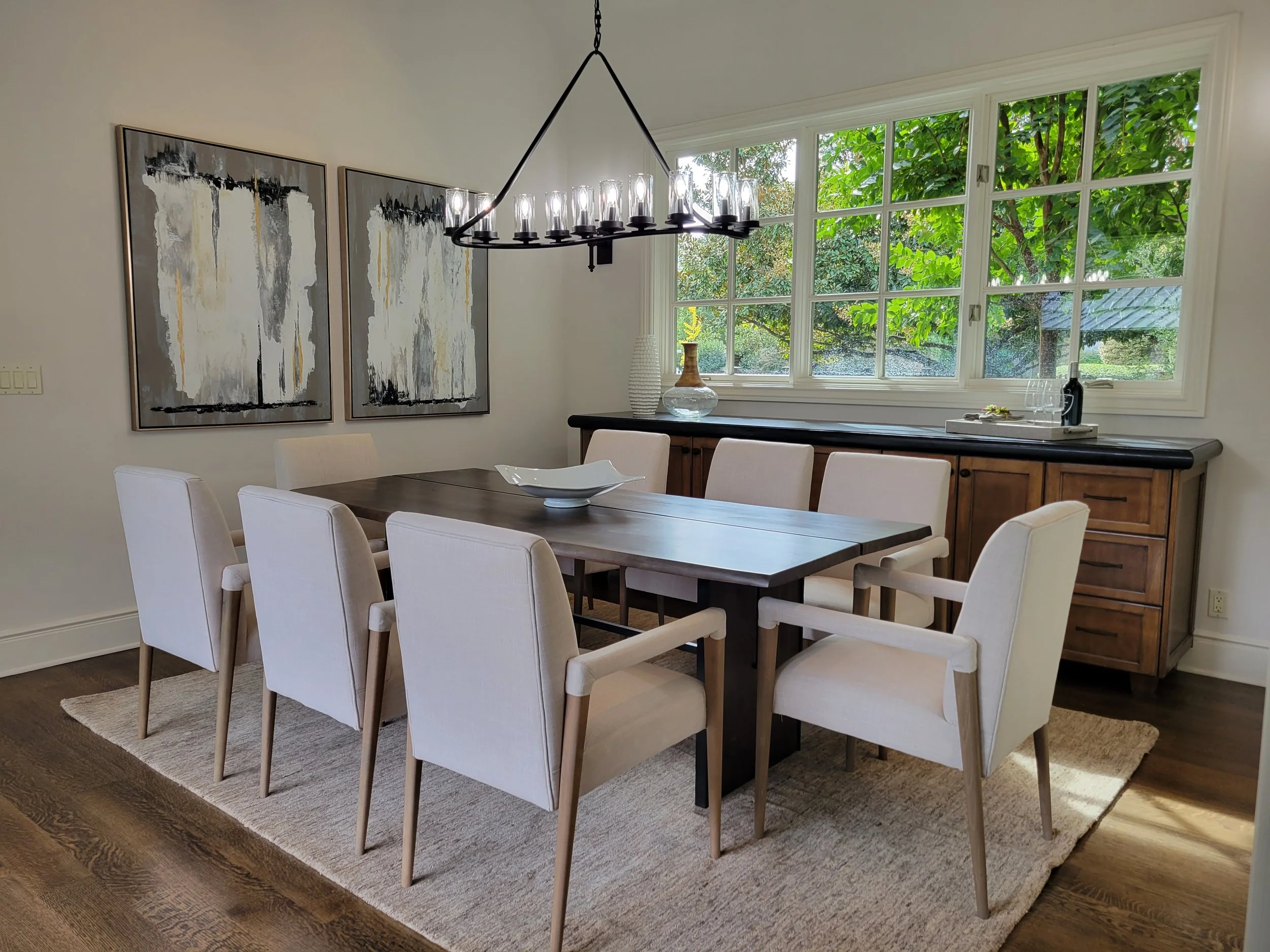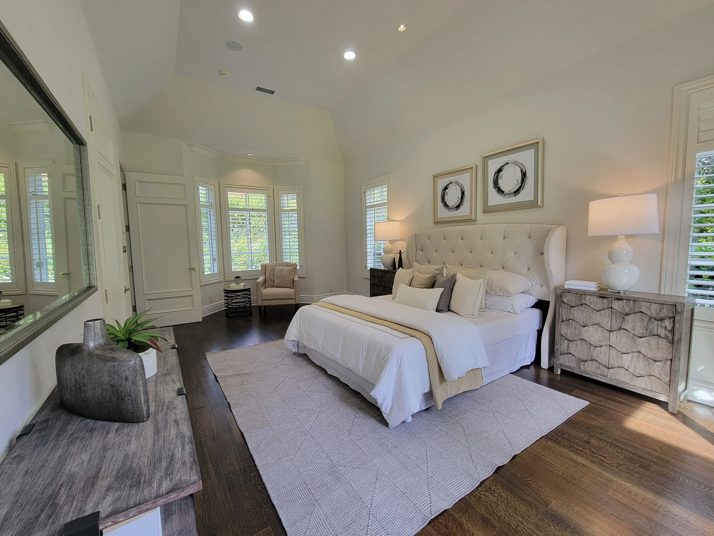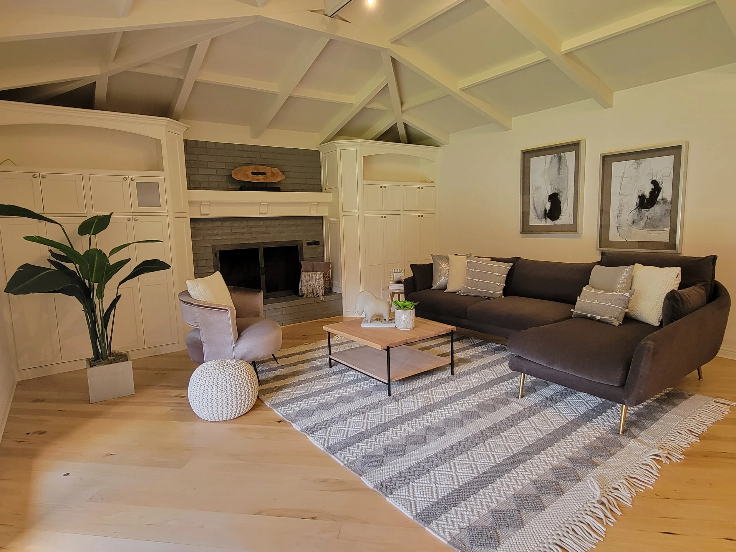 This four-bedroom home in Atherton blends multiple styles to create a uniquely beautiful home. The staging was designed to highlight the high ceilings and complement the merging of styles.
