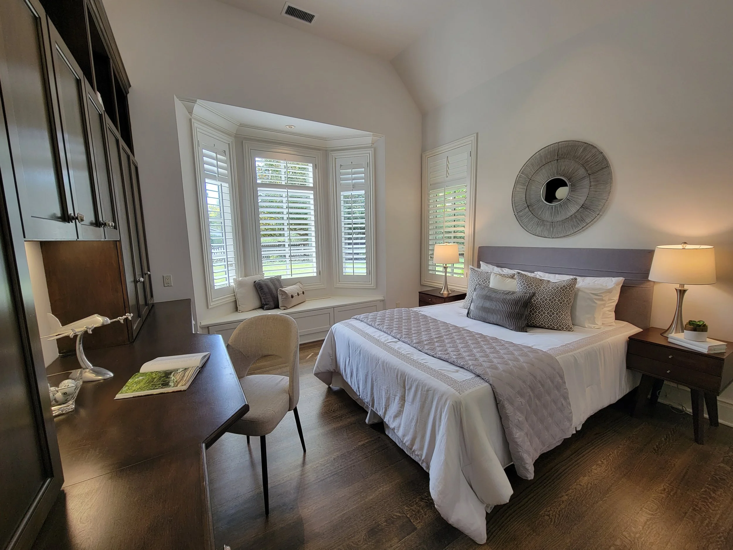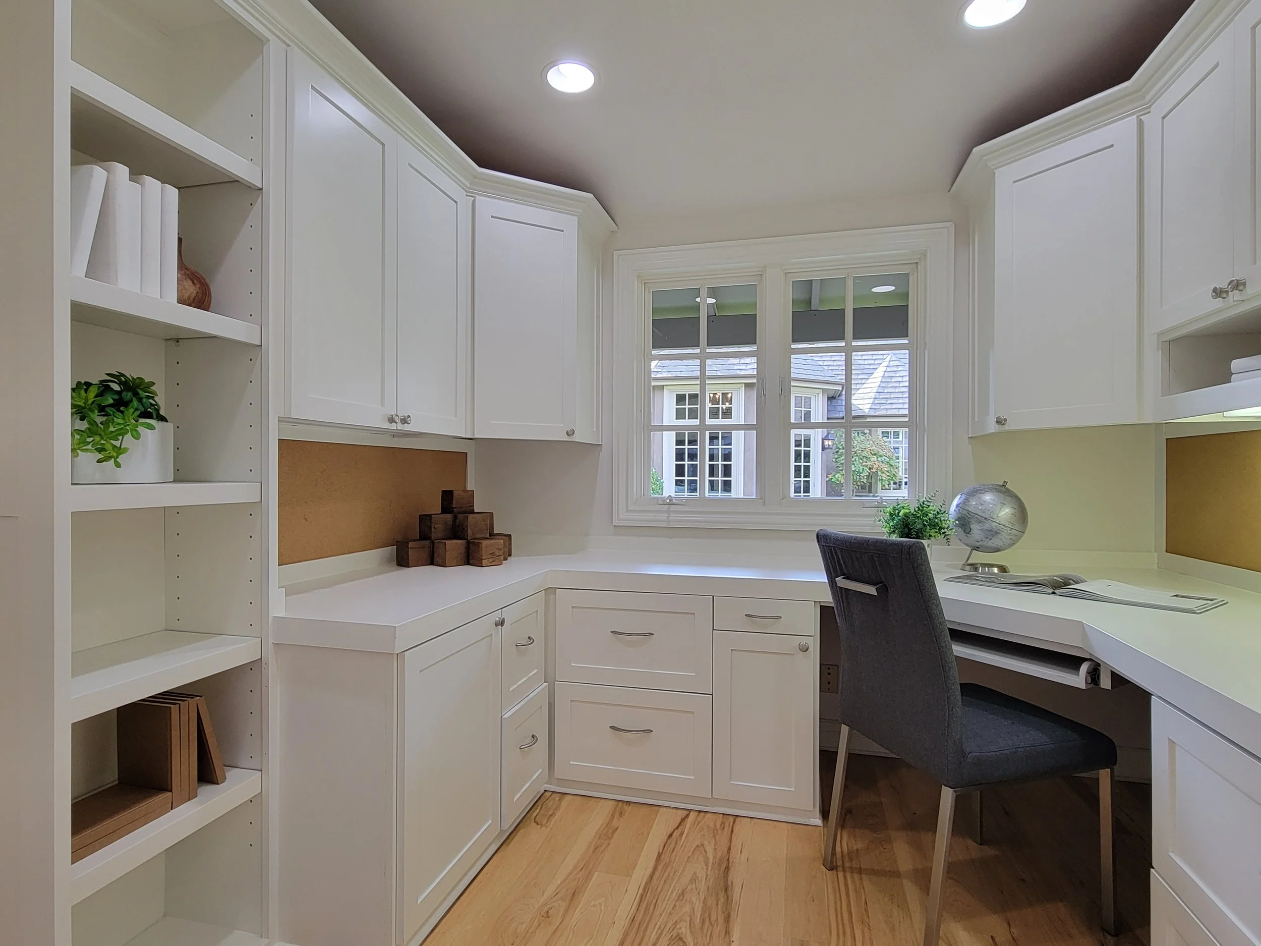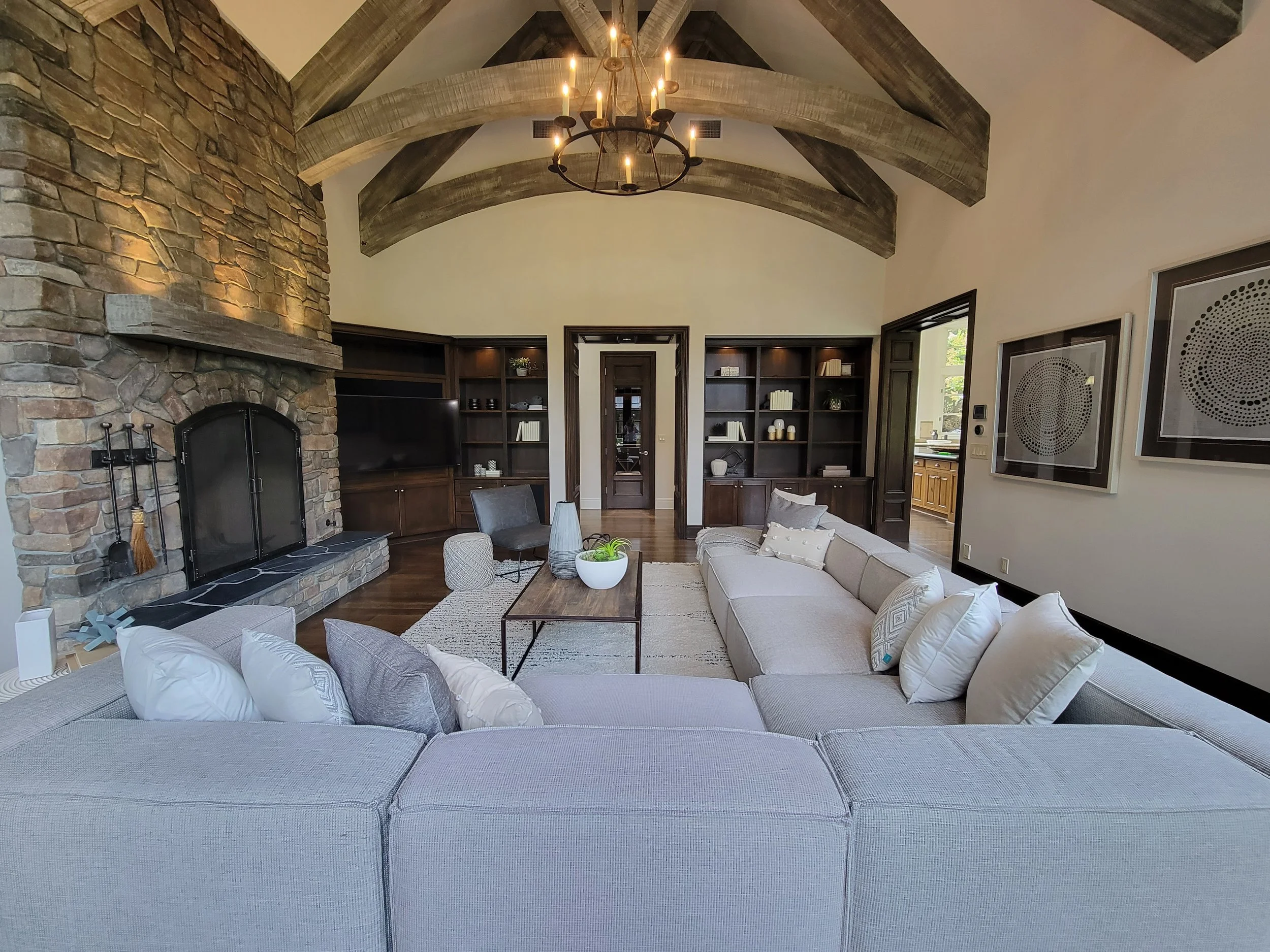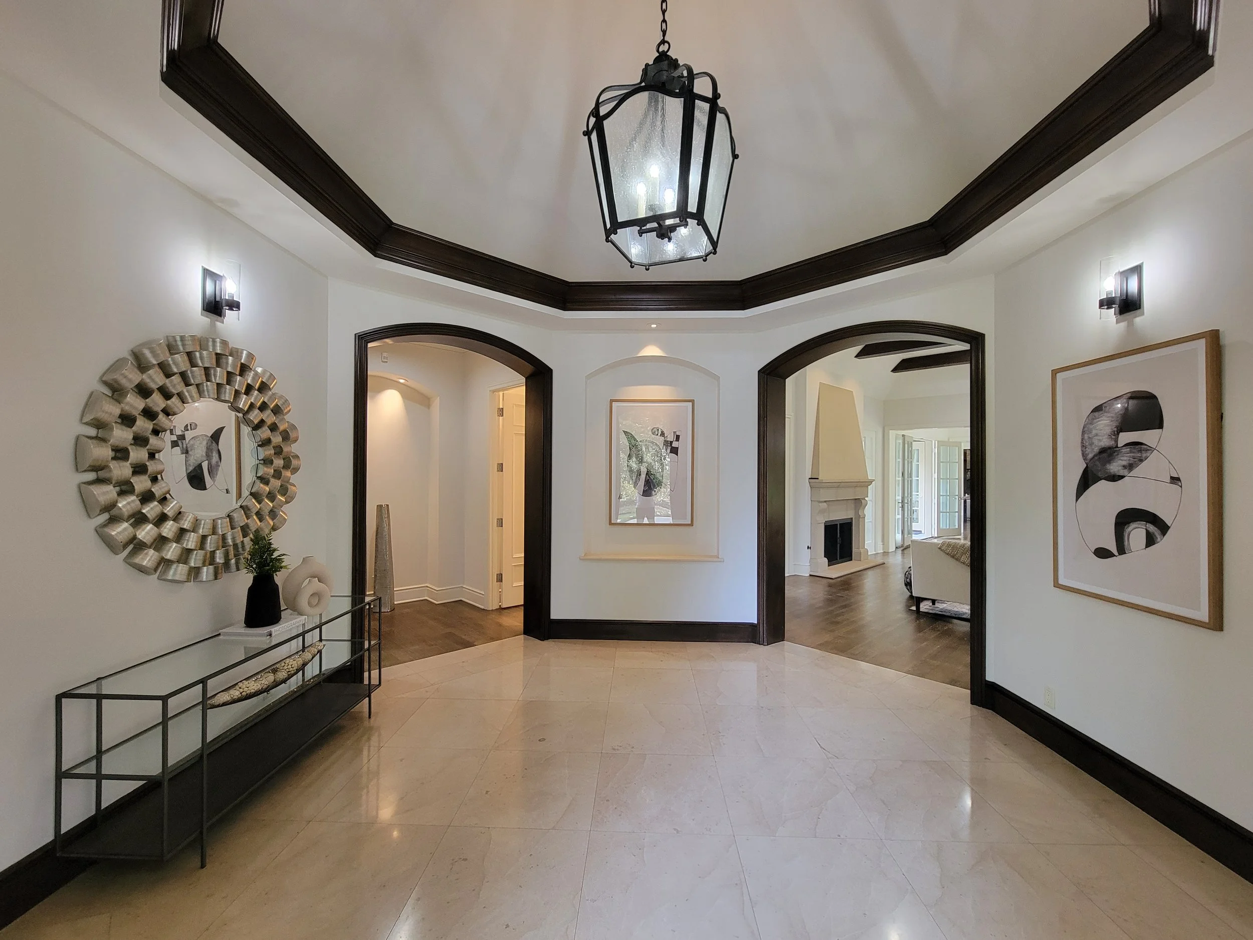 This four-bedroom home in Atherton blends multiple styles to create a uniquely beautiful home. The staging was designed to highlight the high ceilings and complement the merging of styles.